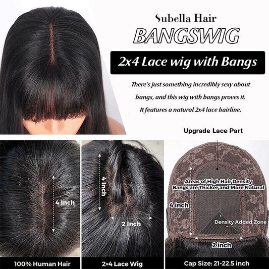 Glueless Human Hair Wigs with Bangs Straight Bob 2x4 HD Lace Wigs With Bangs