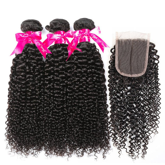 ÉCONOMISER 33%Kinky Curly Human Hair 3 Bundles With 4x4 Lace Closure