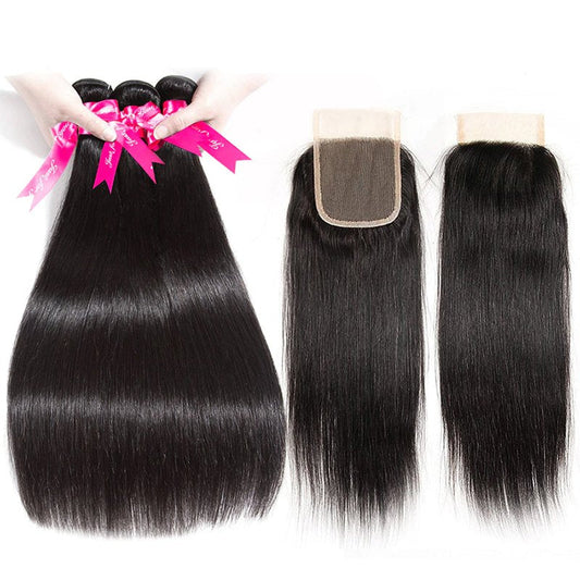 ÉCONOMISER 34%Straight Human Hair 3 Bundles With 4x4 Lace Closure