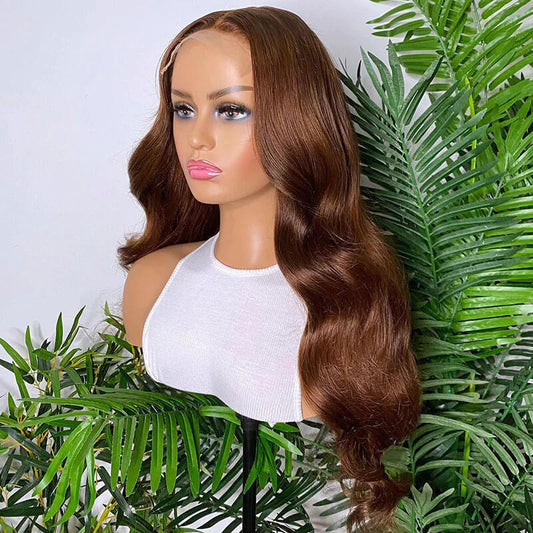 Subella Hair #4 Light Brown Wig Body Wave Human Hair Colored Wig HD Transparent Lace Closure Wig