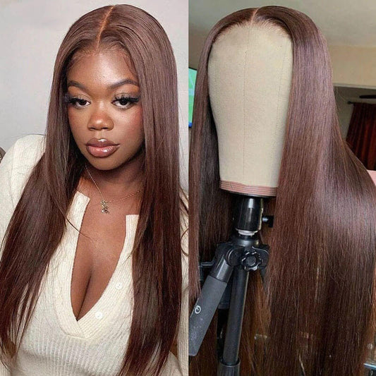 Dark Brown Colored Wigs Straight Hair Brown Human Hair Wig HD Transparent 4x4 Lace Closure Wig
