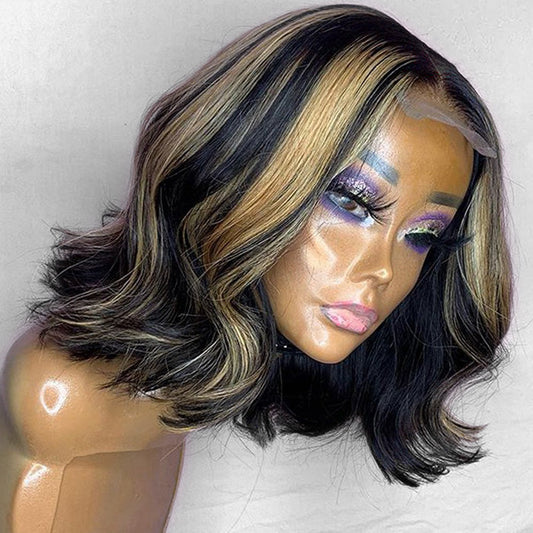 Blonde Highlight Body Wave Bob Wig Mix Color 1B/27# Lace Front Wig Human Hair 180% Density