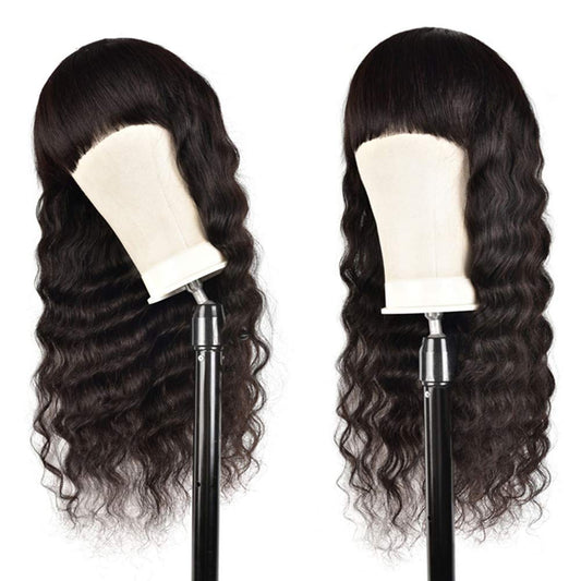 Human Hair Wigs With Bangs Top Lace Wig Loose Deep Wave Human Hair Wigs