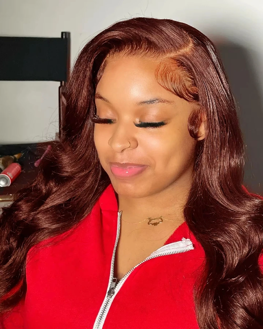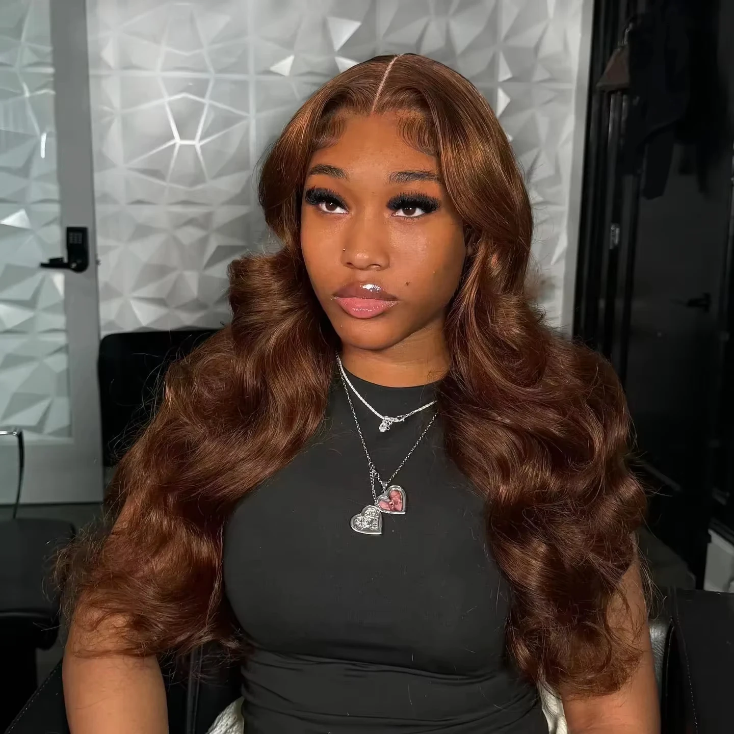Curtain Bangs Glueless HD Lace Wig Chic Retro Chestnut Brown Body Wave Human Hair Wigs
