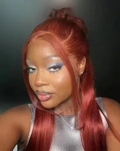 Curtain Bangs Glueless HD Lace Wig Reddish Brown Straight Human Hair Wigs with Adjustable Strap