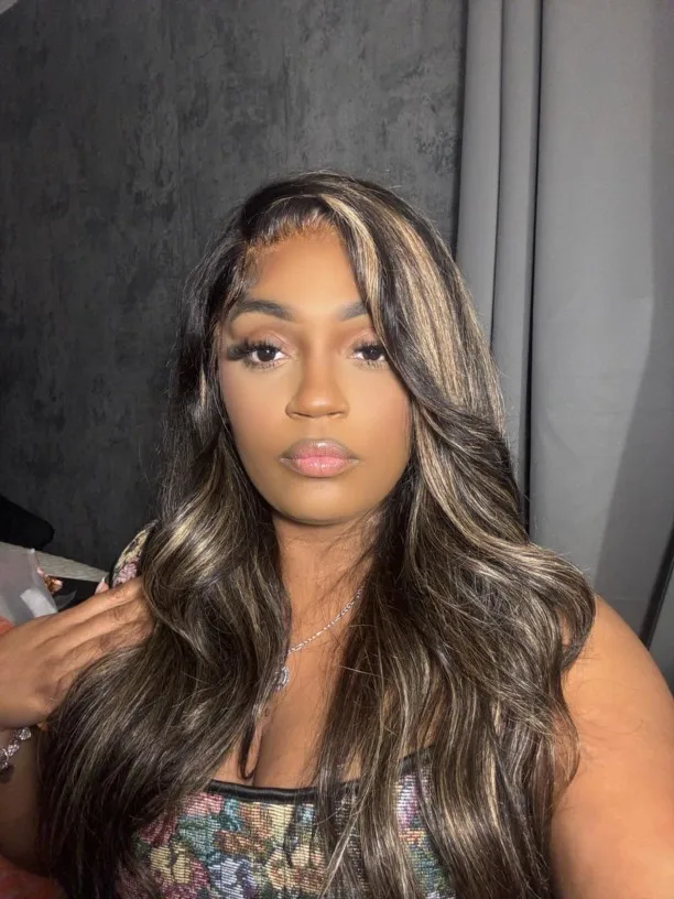 Blonde Highlights Body Wave Human Hair Wigs with Bangs Glueless HD Lace Front Wigs