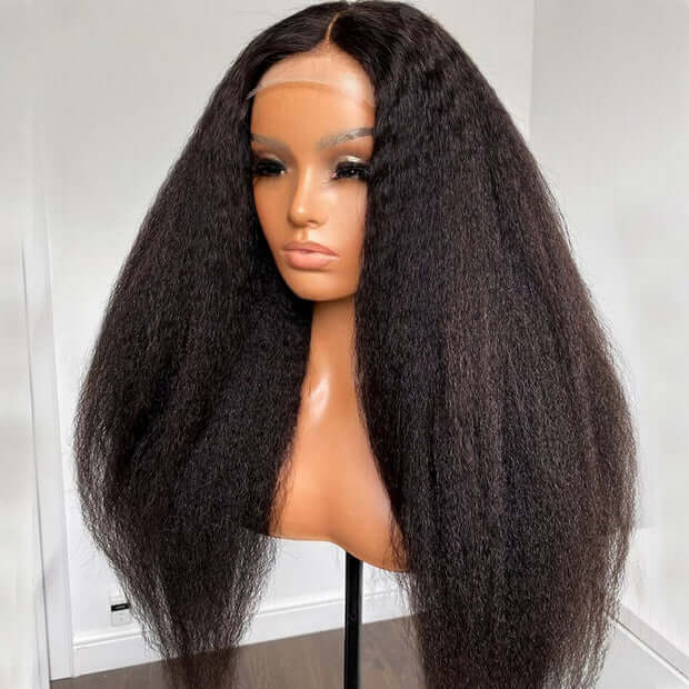Kinky Straight Human Hair 5x5 HD Transparent Lace Closure Wigs For Women