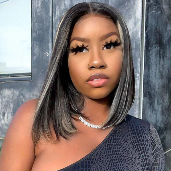 Platinum Blonde Highlight Straight Bob Wig 1B/613 Mixed Color HD Lace Short Human Hair Wigs